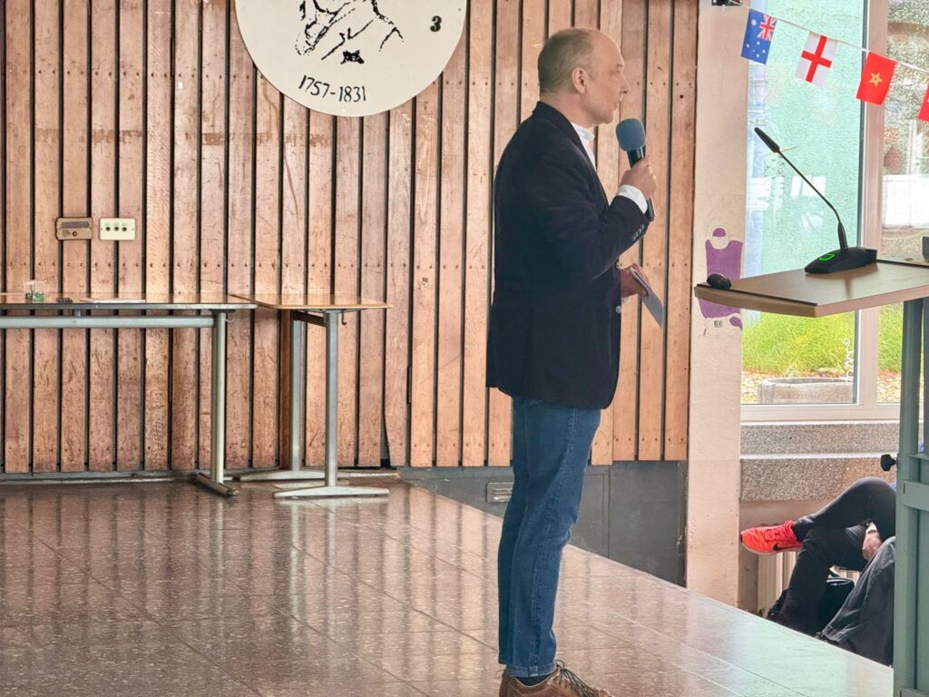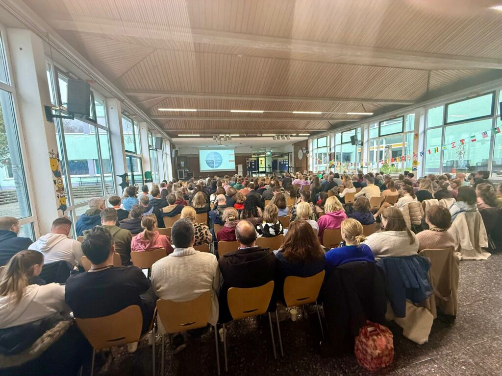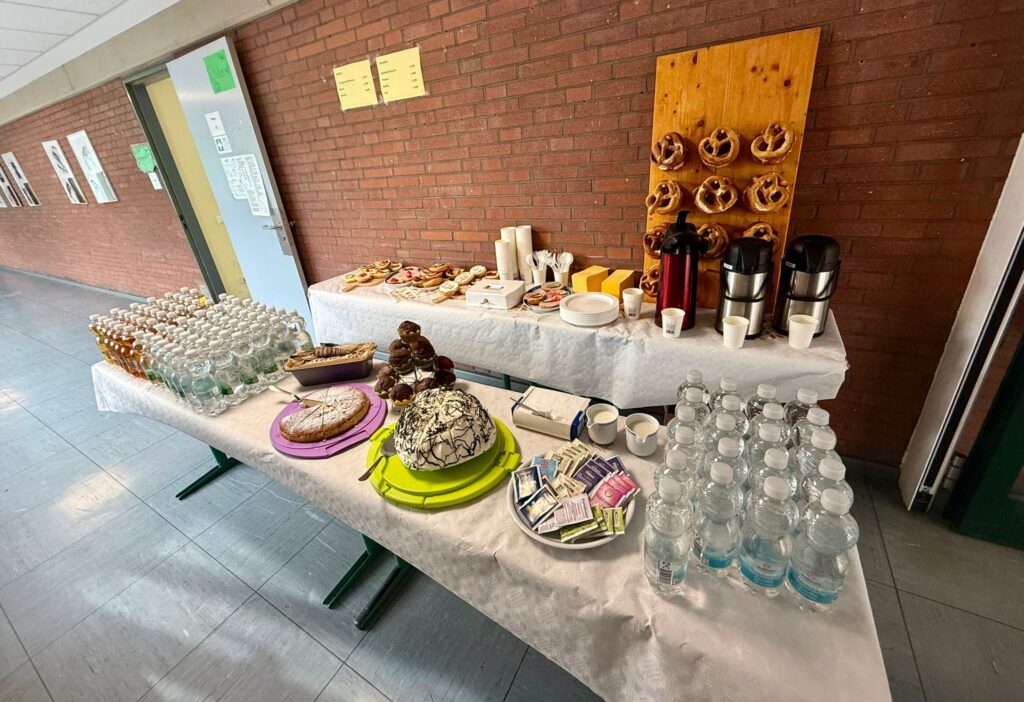 Während der Mittagspause sorgte ein Pizzawagen für die Verpflegung, begleitet von einem Markt der Möglichkeiten, auf dem verschiedene Projekte vorgestellt wurden. Zusätzlich boten die Klassen 10b und 10d ein Café mit Kuchen, Brötchen und Getränken an, das regen Zuspruch fand.
