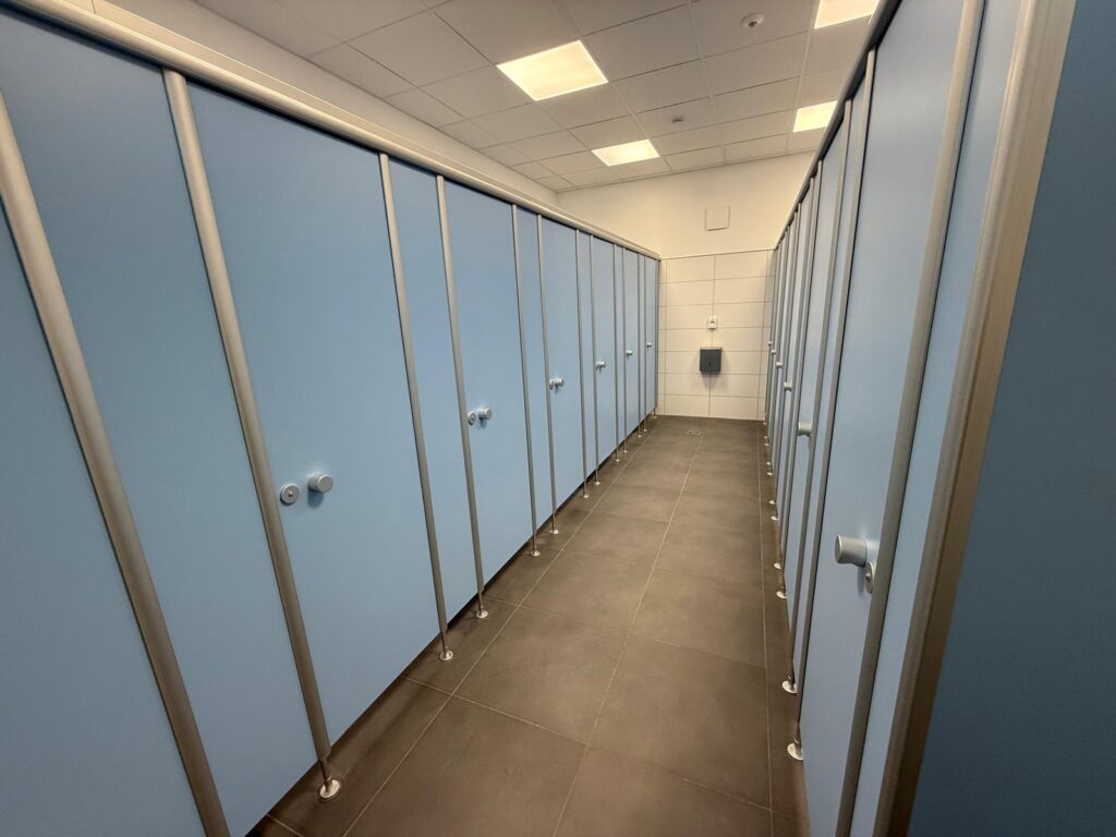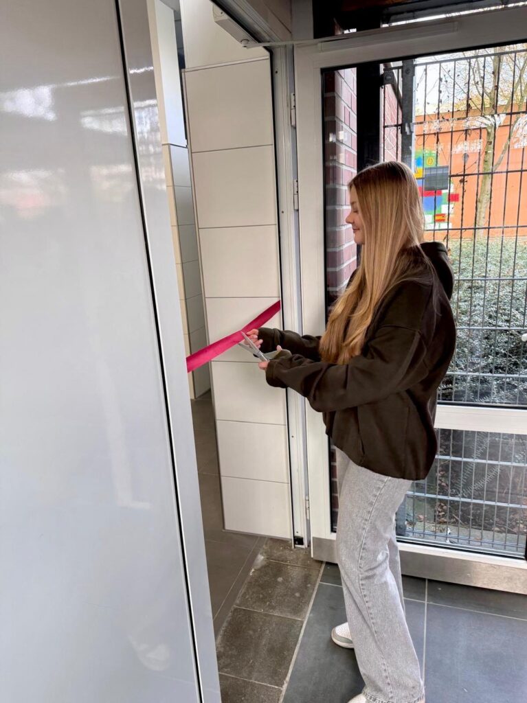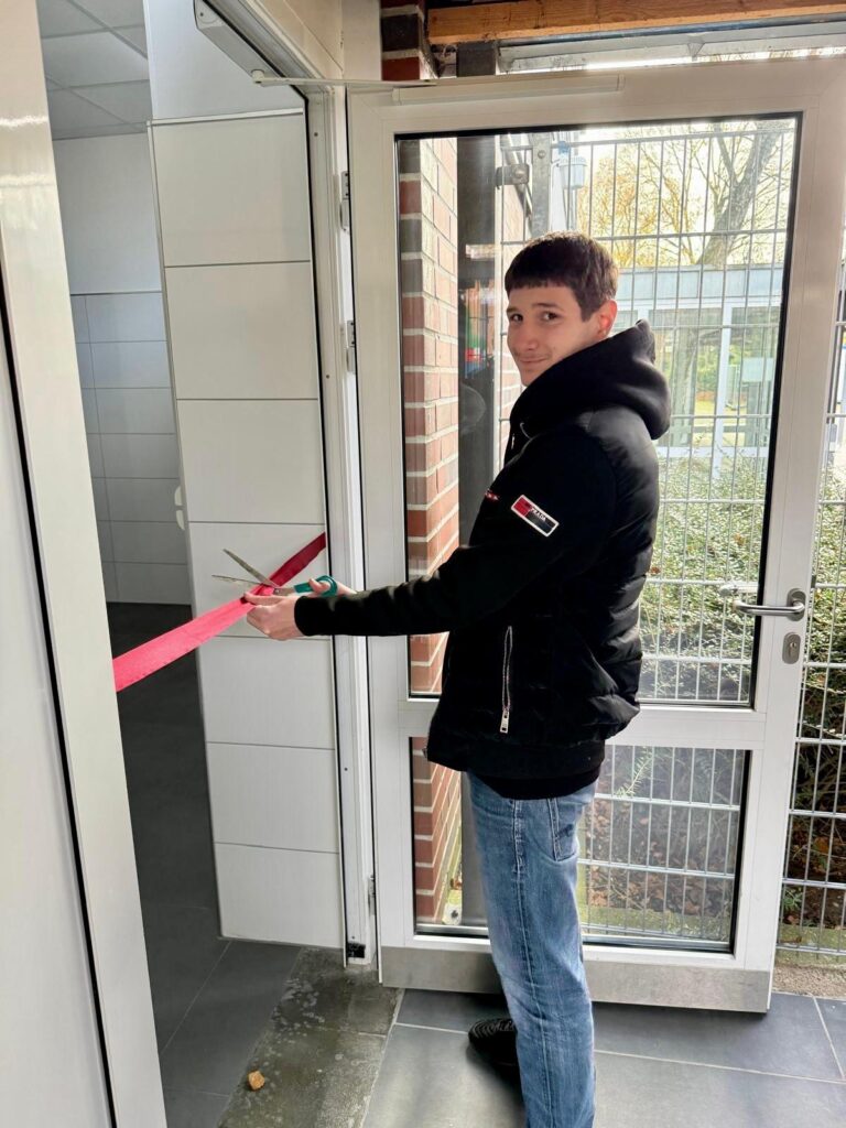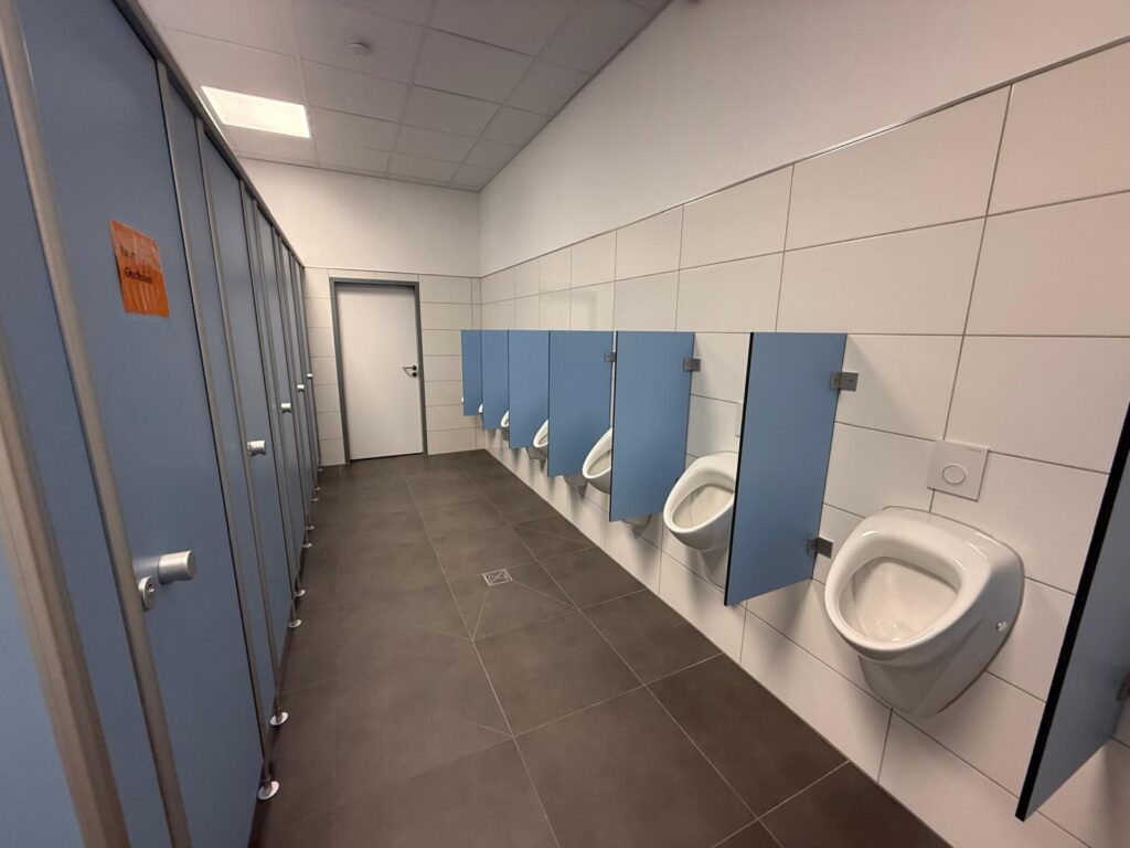 Seit den Sommerferien wurden sie umgebaut und komplettsaniert und heute dann feierlich eröffnet: Die neuen Toiletten am Teilstandort. Die Freude bei den Schülerinnen und Schülern ist groß. Die Türfarben der Kabinen sind von ihnen ausgewählt worden.